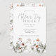 Convite para celebração de Dias de as mães brancos com ilustração aquosa de flores silvestres cor-de-rosa e branca.