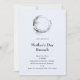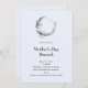 Um convite de brunch de Dia de as mães com uma ilustração mística. Uma lua azul escura com um contorno fino elegante e flores brancas ao longo das suas bordas.