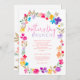 Indulto no delicado encanto de nosso jardim flores silvestres, brunch Invitation, apresentando flores silvestres modernas, delicadas, pintadas à mão, em tons brilhantes, rosa, vermelha, azul, amarela e verde, com uma elegante letra de script de pincel
