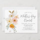 Convites elegantes para brunch de Dia de as mães, com buquê de flores a aquarela e verde em tons de rosa-pincel, laranja-ouro/amarelo, creme, branco e verde. Personalize os convites para o brunch do Dia de as mães floral com seus detalhes de evento.