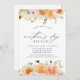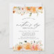 Convites elegantes para brunch de Dia de as mães, com flores aquarelas que fazem fronteira entre a parte superior e inferior do design em tons de pêssego, laranja, rosa-pincel, creme e branco, com um verde sutil. "Dia de as mães" é exibido em um script de caligrafia moderno com os detalhes de seu evento mostrados abaixo. A palavra "brunch" pode ser alterada para se adequar às suas necessidades de almoços de Dia de as mães, jantas, festas de chá, etc.