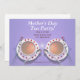 Convites com a minha imagem de 2 xícaras de chá com pequenas flores vermelhas num fundo roxo.