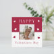 Design moderno minimalista de blocos coloridos apresentando um modelo de foto no qual você pode adicionar sua bela foto, com vermelho no topo e branco do fundo, com texto simples moderno dizendo feliz e oposto no fundo dizendo dia de os namorados em vermelho sobre fundo branco no topo com corações brancos e vermelhos espalhados em um simples design moderno, atrás há muito espaço para escrever sua mensagem romântica especial. se você tem algum problema com este design ou gostaria dela em outros coloways, por favor, entre em contato comigo janine através do botão de mensagem do zazzle store no willow primavera studio.