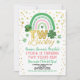 [Todo o texto é editável, exceto DOIS sortudos]Convite de aniversário bonito no estilo. Tema: Shamrock & Rainbow.