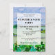 Este Convite de festas único de Dia de São Patrício é decorado com um design paisagístico irlandês com pincéis verdes. Facilmente personalizável com seus detalhes. Design original © Michele Davies.