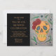 Convite à Celebração do Dia de los Muertos, com um design preto e branco e uma imagem do crânio de açúcar. Com letras douradas, você pode personalizar este item com suas próprias informações. A parte traseira tem uma cor de pêssego correspondente, adicionando contraste. Excelente de convidar seus amigos para a festa do Dia dos Mortos ou do Dia das Bruxas.