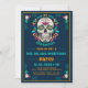 Vírus mexicano, design de convite para festa de Halloween. Dia dos Mortos, Dia De Los Muertos, crânio floral, convite de festas personalizável. Fundo azul escuro