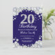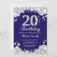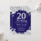 Convite de Aniversário de 20. Fundo do Quadro de Diamantes de Marinho Azul e Silver Rhinestone. Convite para o Elegante Birthday Bash.Preto & Branco. Aniversário Adulto. Aniversário das mulheres. Homens Aniversário.