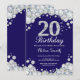 Convites Diamante 20 de Azul e Marinho de Aniversário
