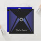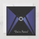 Convite de festa e evento com design elegante preto e azul-marinho com acabamento preto e diamante. Este modelo de design funciona bem como um convite para uma festa de aniversário, festa de cocktails, festa de Natal, evento corporativo, gala, festa de aposentadoria, festa de formatura e qualquer outra ocasião especial. Personalize com sua escolha de estilo de fonte e cor da fonte, e cor de fundo do verso. Este é um design impresso sem pedras preciosas, jóias, brilho, etc. reais.