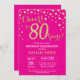 Convite de aniversário de 80 com fundo de diamante rosa quente e brilhante Dourado. Dourada Confetti. Aniversário Adulto. Homens ou Mulheres Aniversário. Para mais personalização, clique no botão "Personalizar" e use nossa ferramenta de design para modificar este modelo.