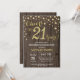 aniversário de 21 anos com madeira russa e fundo de diamante brilhante Dourado. Retro De Vintagem Do País. Dourado Confetti. Aniversário Adulto. Homens ou Mulheres Aniversário. Para mais personalização, clique no botão "Personalizar" e use a ferramenta design para modificar este modelo.