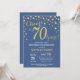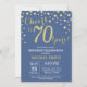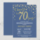Convite de Aniversário de 70 com Fundo de Diamante Azul e Dourado. Dourada Confetti. Aniversário Adulto. Homens ou Mulheres Aniversário. Para mais personalização, clique no botão "Personalizar" e use nossa ferramenta de design para modificar este modelo.
