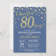 Convite de Aniversário de 80 com Fundo de Diamante Azul e Dourado. Dourada Confetti. Aniversário Adulto. Homens ou Mulheres Aniversário. Para mais personalização, clique no botão "Personalizar" e use nossa ferramenta de design para modificar este modelo.