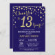 Convite de Aniversário de 13 com Marinho Azul e Dourado Fundo do Diamante Glitter. Dourada Confetti. Aniversário de criança. Aniversário de Menina ou Menina. Para mais personalização, clique no botão "Personalizar" e use nossa ferramenta de design para modificar este modelo.