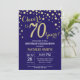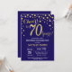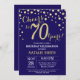 Convite de Aniversário de 70 com Marinho Azul e Dourado Fundo do Diamante Glitter. Dourada Confetti. Aniversário Adulto. Homens ou Mulheres Aniversário. Para mais personalização, clique no botão "Personalizar" e use nossa ferramenta de design para modificar este modelo.