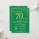 Surpreenda o Convite de Aniversário de 70 com o Fundo de Diamante Verde e Dourado de Literatura. Dourada Confetti. Aniversário Adulto. Homens ou Mulheres Aniversário. Para mais personalização, clique no botão "Personalizar" e use nossa ferramenta de design para modificar este modelo.