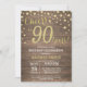 Convite de aniversário de 90 com madeira russa e fundo de diamante de brilhante Dourado. Retro de Vintagem do País. Dourada Confetti. Aniversário Adulto. Homens ou Mulheres Aniversário. Para mais personalização, clique no botão "Personalizar" e use nossa ferramenta de design para modificar este modelo.
