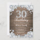 Convite Rustic aniversário de 30 anos. Diamante do Silver Rhinestone. Fundo Da Madeira Rústica. Vintage Retro Country. Convite para o Elegante Birthday Bash. Aniversário Adulto. Aniversário das mulheres. Homens Aniversário.