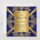 Qualquer Festa de aniversário de idade Imagens de Óculos Dourados Real Azul. Ornamentado Elegante Jewel Gem Ouro Festa de aniversário Dourada camada Dourada. Personalize com seus próprios detalhes.