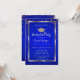Dourado boné de formatura brilhante e diamantes de ouro em um fundo azul real.