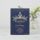 Coroa elegante no convite de festas azul marinho da quinceañera.