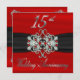 Brilhantemente sofisticado e elegante Aniversário de Casamento de Quinze Anos com fundo de aparência de cetim vermelho falso e fita de cetim preta com diamantes e rubis em um estilo fechado que continua na parte de trás. A parte de trás tem uma sobreposição de cartão falso prateado e perolado montada nos cantos com fechos de rubi e diamante. Design original de Holiday Hearts Designs (todos os direitos reservados).