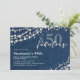 Um modelo moderno, elegante e clássico do 50º convite de aniversário para mulheres com 50 e fabuloso tema com fundo denim, cordas de pérolas e diamantes (são efeitos digitais) e tipografia moderna em branco pérola. Um design chic de "ouros e pérolas" para uma mulher aos cinquenta anos, no seu quinquagésimo aniversário que combina outro tema da moda: denim e diamantes. Uma escolha encantadora para uma mulher que gosta de denim, diamantes, pérolas, brilho e brilho, terra ocidental e elegância despretensiosa.