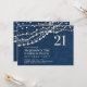 Um modelo moderno, elegante e clássico do 21º convite de aniversário para raparigas com um fundo denim, cordas de pérolas e diamantes (estes são efeitos digitais) e tipografia moderna em branco pérola. Um design chic de "ouros e pérolas" para uma jovem que faz vinte e um anos, no seu vigésimo primeiro aniversário que combina outro tema da moda: denim e diamantes. Uma escolha encantadora para uma mulher que gosta de denim, diamantes, pérolas, brilho e brilho, terra ocidental e elegância despretensiosa.