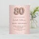 Um convite moderno, na moda e glamouroso para uma festa de aniversário 80. Um fundo metálico rosa dourado falso com aspecto em forma de diamantes cor-de-rosa. O nome é escrito com um moderno e escuro, rosa dourado, escrito com letra de estilo manuscrito. Personalize e adicione os detalhes da sua festa. O número 80 é escrito com uma fonte de estilo balão, script.