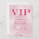 Este convite de festa de passagem VIP glamorosa apresenta um design cintilante e feminino em um fundo rosa. O título VIP é impresso no topo, seguido pelo título do evento. Cordões de diamantes rosa separam o texto. Confetes cintilantes acentuam as bordas superior e inferior. O local e horário da festa ou evento são impressos no verso. É perfeito para uma festa de aniversário, sweet 16, chá de noiva ou outra celebração elegante.