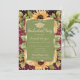 Gold glitter graduation cap, gold diamonds, and sunflowers on a dark red background.