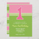 Este querido convida é quase tão bonito quanto seu bebê. Sua decoração do partido pode facilmente coordenar com este design cor-de-rosa e verde. Comemore seu primeiro aniversário com estilo e simplicidade!