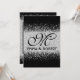 Um convite elegante com um confete de brilho prateado se dispersando em um fundo preto puro. A placa reverte para seu texto dentro de um grande retângulo preto cercado por um quadro de brilho prateado. Você pode personalizá-lo completamente indo para o menu personalizar. Isto é parte de uma bela suíte de casamento.
