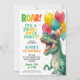 A joyful watercolor artwork featuring a cool dinosaur wearing sunglasses and a party hat, surrounded by colorful balloons and confetti. Perfect for kids who love adventure and prehistoric fun. The vibrant hand-painted textures and playful colors create a cheerful atmosphere that makes any celebration unforgettable.