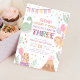 Dinosaur 3rd Birthday Invitations Girl. Cute Baby Dino Third Invite Three Year Old Printable Pastel Pink Girl Greenery Digital Kids Party D3