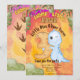 "Junte-se à diversão! Pequeno Dinossauro "Nome" Torna-se Três!" Embarque numa aventura pré-histórica enquanto celebramos o terceiro aniversário do nosso pequeno explorador de dino, "Nome." O design ao estilo aquarela apresenta a adorável imagem de um dinossauro bebê segurando orgulhosamente o número 3, cercado pelas palavras "Chomp, Stomp, Rawr." Personalize o nome, a data e o endereço para convidar os amigos e a família para uma boa hora!