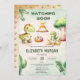 Convide seus entes queridos para celebrar seu pequeno milagre com nosso convite chá de fraldas que apresenta uma cena chorosa e alegre de dois adoráveis dinossauros verdes, um dinossauro-mãe com seu bebê eclodindo do ovo. em pé em uma paisagem verde e exuberante. Há também um pequeno vulcão de desenho animado que parece estar em erupção com fumaça e lava. Há um ninho cheio de três ovos manchados de cor clara. Este cartão adorável é um sucesso! Se você quiser essas designs em um produto mais compatível, por favor, entre em contato comigo.