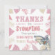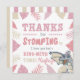 Dinossaur Dragon tematizou rosa e bege, bronzeado com faixas coordenadas por cores no dorso, um cartões de agradecimentos bonito para enviar seus convidados para assistir à festa de aniversário... um lugar para adicionar nome