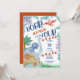 Convite de aniversário de dinossauro para o quarto aniversário de um menino. A frase de rima diz "Roar [nome] está virando Quatro". Design de dino com aquarela com dinossauros bonitos no cenário juástico da selva tropical. Por favor, procure na minha loja mais convites para o aniversário de dinossauros.