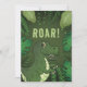 A ilustração fofa original de Destei de um Tiranossauro Verde Rex / dinossauro T-rex. Há também uma área de texto personalizável acima do dinossauro que agora diz: "Rumo!". O design é enquadrado por plantas tropicais, incluindo samambaias e folhas de monstera. Do outro lado há áreas de texto personalizáveis.