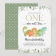 Convide amigos e família de estilo e dê o tom para o seu dia especial com este charmoso convite de aniversário. A design apresenta dinossauros (brontosauros, estegossauros, triceratops, tiranossauro rex) e verde sobre fundo branco.