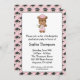 Um adorável ursinho de pelúcia vestindo um boné e um vestido cor-de-rosa, com um diploma é apresentado neste convite para a formatura do jardim de infância. Perfeito para qualquer pequena formatura de jardim de infância ou pré-escola!