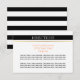 Este cartão de direções de casamento simples, porém elegante, apresenta um padrão de listras pretas e brancas no verso. Na frente, há uma faixa preta na parte superior e sua redação está em uma faixa branca com uma faixa dourada.