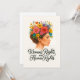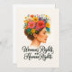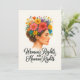 Uma mulher com uma cordilheira floral colorida olha para o lado, representando força e poder. A expressão "Direitos da Mulher são Direitos Humanos" salienta a igualdade.