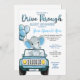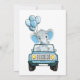 Dirigir através do Chá de fraldas de Menino com Elefante de Bebê em um carro azul e balões para NOVO chá de fraldas NORMAL em uma pandemia.
