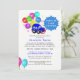 Caricatura divertida e balões coloridos para um menino dirigindo por convites para comemorações de chá.