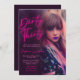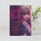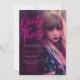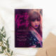 Convite minimalista para destacar a foto impressionante da celebrante, para complementar o design Luzes neon e cor rosa fúcsia foram usadas no título para dar ao convite uma aparência tentadora