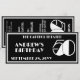 Um grande aniversário de marcos merece um grande sucesso. Este elegante convite a preto e branco coloca os 50 marcos do ano em destaque no convite, que é estilizado como uma marca de teatro, mas também parece um ingresso para o grande evento. O verso apresenta mais detalhes sobre local e local, bem como informações de RSVP. Um convite de aniversário de 50 anos inspirado na discoteca.