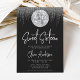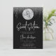 Um doce convite de disco moderno. Este convite apresenta uma bola prateada de disco e luzes brilhantes sobre um fundo preto.